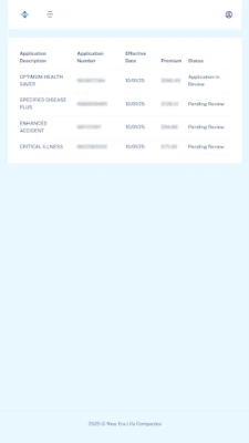 This is for new insurance policy applicants only and not for policies that have been issued. This is general product information only for an applicant of New Era Life and/or Philadelphia American Life products. It does not reflect your issued policy documents and does not mean your coverage has started. Coverage begins only once your application is approved and your policy is officially issued.