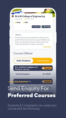 View details of college & make admission Enquiries effortlessly.