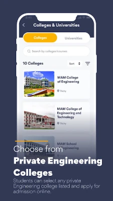 Explore a comprehensive list of colleges and courses offered.