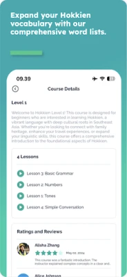 Comprehensive Courses: Structured lessons guide you through every aspect of Hokkien, from basics to advanced topics.