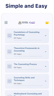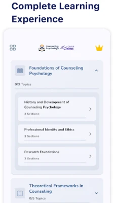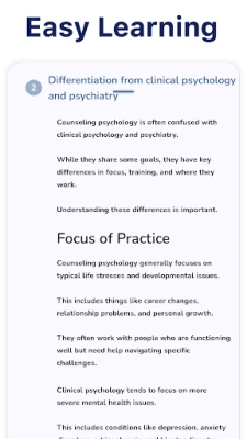 • Structured Content: Learn Counseling Psychology step-by-step, from foundational theories to advanced techniques.