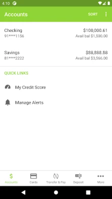 Features: • Get loan info • Review recent transactions • Transfer funds between accounts • View and pay bills