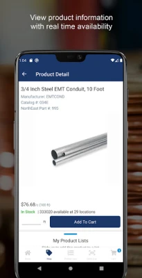 • Find products • View real-time price and availability • View active shipments • Place orders and track their status • Create lists of frequently ordered products • Find your local branch • Scan UPC barcodes • Quickly create orders using the quick scan • Register for an account