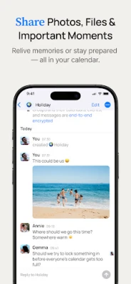 Each shared calendar and event includes its own thread, so you can chat, share photos, send documents, and keep everyone updated—all in context.
