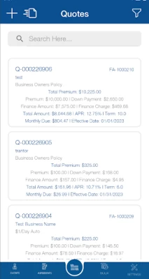 "Strand app facilitates creation of quotes for insurance financing, quick quote, make payments & client portal for Agency.