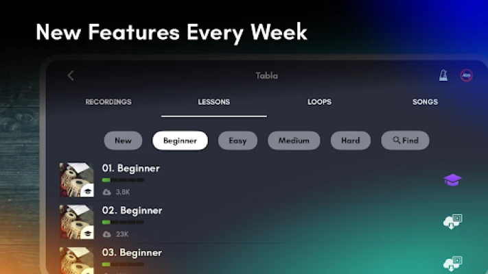 - New tabla lessons and loops introduced weekly